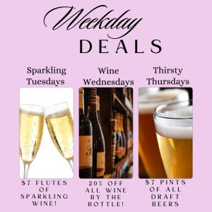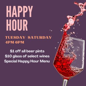 Live music Friday & Saturday 5:30-8:30pmDaily Happy Hour 4:00-6:00pm**Closed Sundays & Mondays **